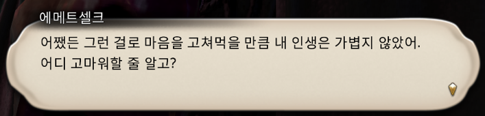 1. 근데 빛전 이자식 분명 선택지는 다 만류이긴 한데… 표정이 너무…… 라하 때랑 온도차 심하지 않냐?