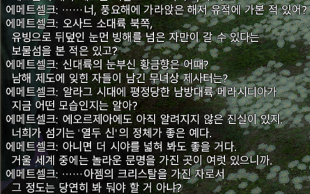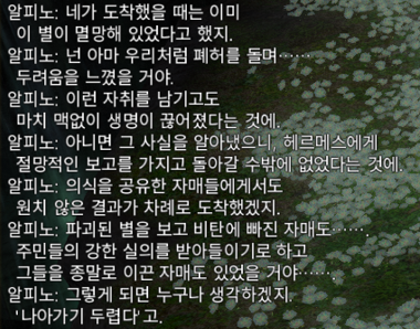 5. 엘피스에서 메테이온이 들려준 얘기들 멸망 단편집 같아서 더 보고 싶었는데 이렇게 지역 전체로 구성해줄 줄은 몰랐다 너 무 조 아